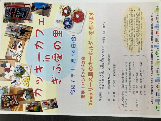 来週、11/14カッキーカフェ in ぎふ愛の里では、