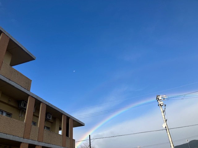 ちょうど出勤の頃、西の空に大っきくてきれいな虹がかかっていました。