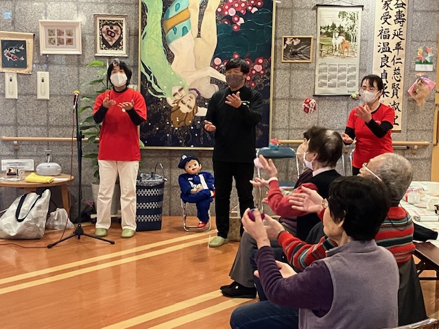最初に腹話術、三線の演奏…