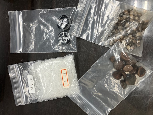 ビールの王冠、ジュズダマ、椿の実、ペレット